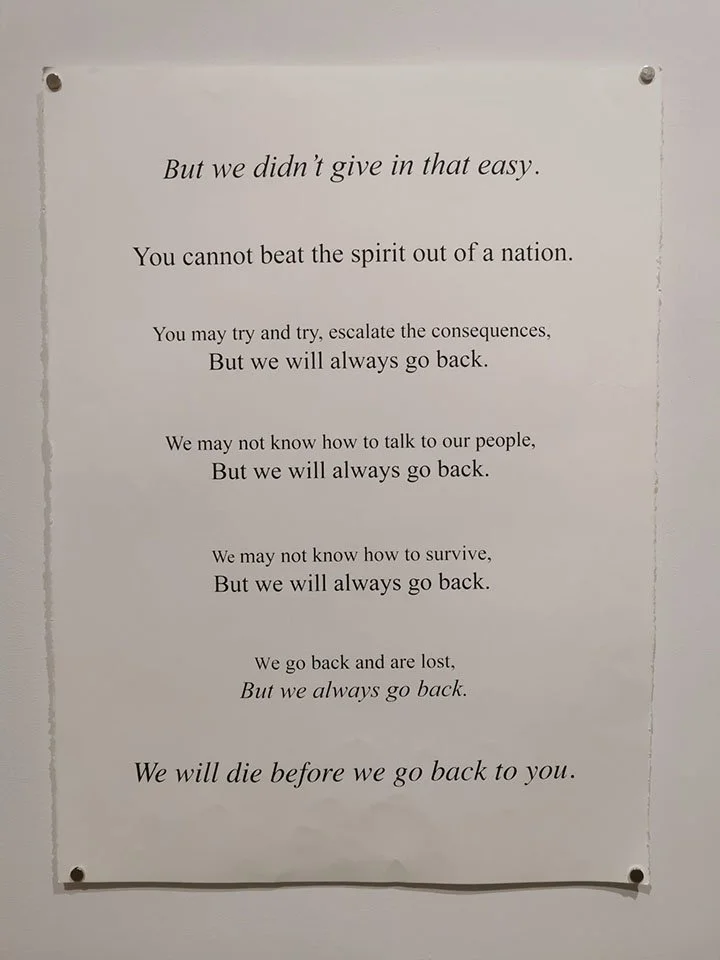 Tremblett also turned some of her writing on colonialism into an art piece. Photo by: Justin Brake.