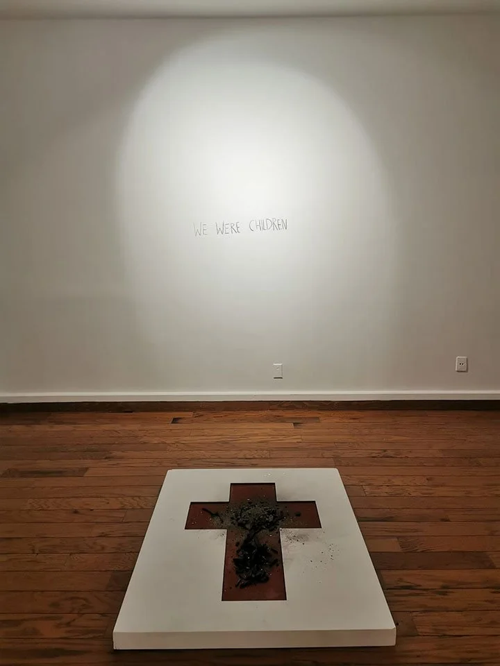 One day, during the show’s setup, she was in the gallery with a single piece of the charcoal in her hand, trying to figure out how to create the piece. “I just walked to the wall and I wrote ‘We were children,’ and then I sat on the floor and I cried.”